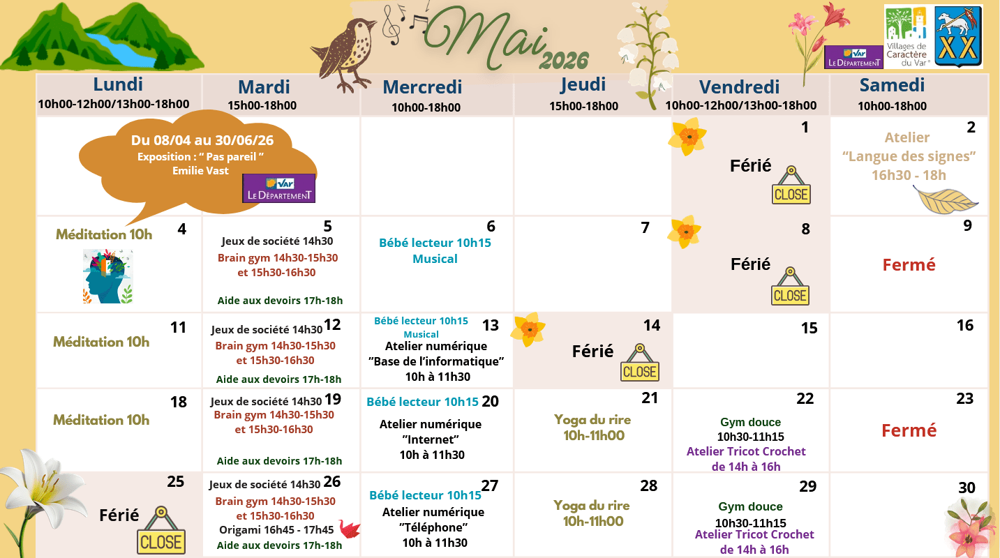 Planning médiathèque mai 2026